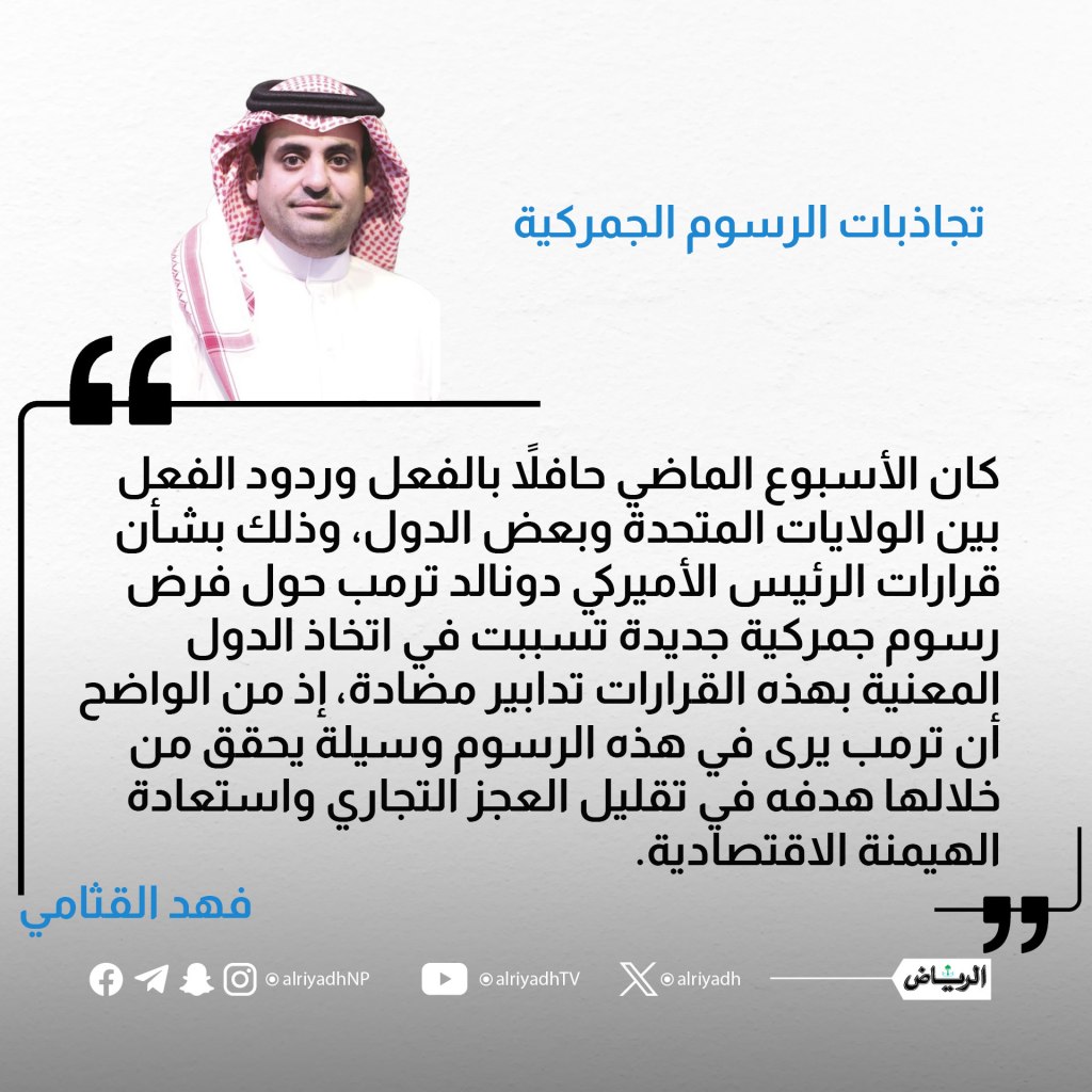 كان الأسبوع الماضي حافلاً بالفعل وردود الفعل بين الولايات المتحدة وبعض الدول، وذلك بشأن قرارات الرئيس الأميركي دونالد ترمب حول فرض رسوم جمركية جديدة تسببت في اتخاذ الدول المعنية بهذه القرارات تدابير مضادة، إذ من الواضح أن ترمب يرى في هذه الرسوم وسيلة يحقق من خلالها هدفه في تقليل العجز التجاري واستعادة الهيمنة الاقتصادية.