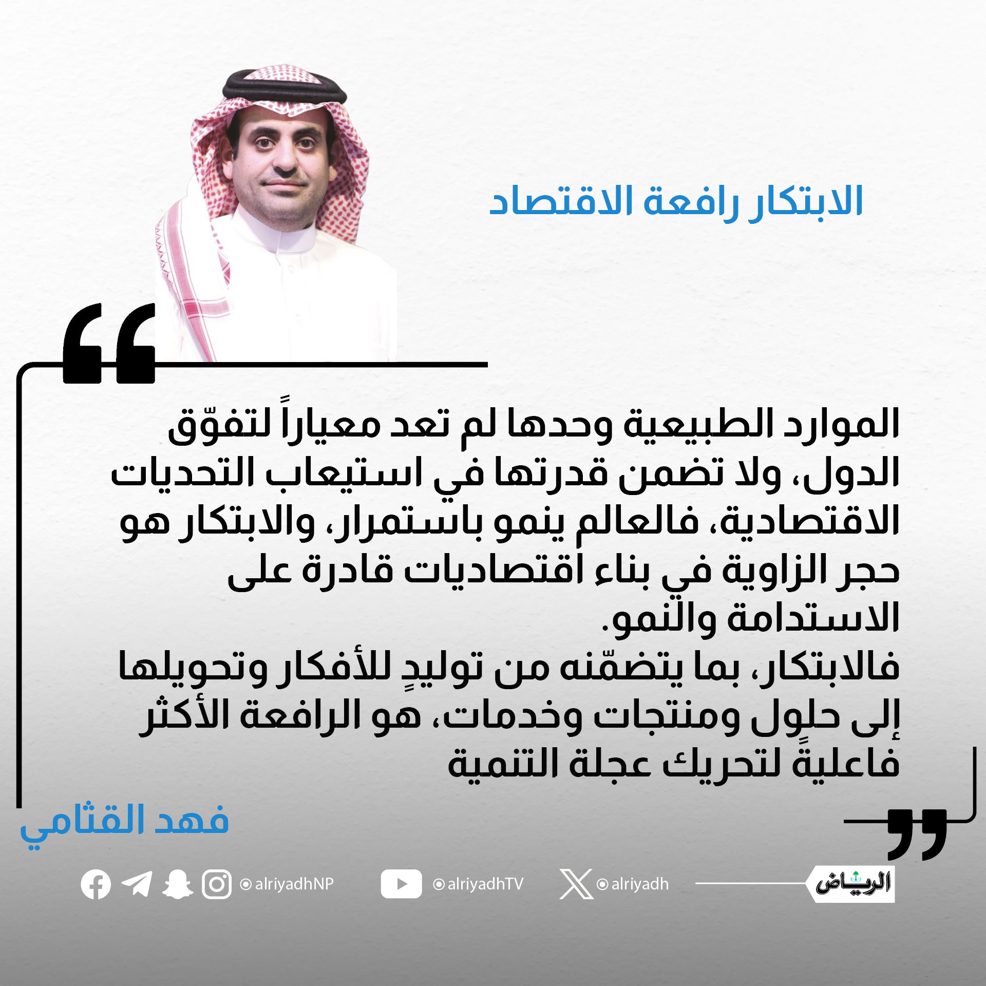 الموارد الطبيعية وحدها لم تعد معياراً لتفوّق الدول، ولا تضمن قدرتها في استيعاب التحديات الاقتصادية، فالعالم ينمو باستمرار، والابتكار هو حجر الزاوية في بناء اقتصاديات قادرة على الاستدامة والنمو.